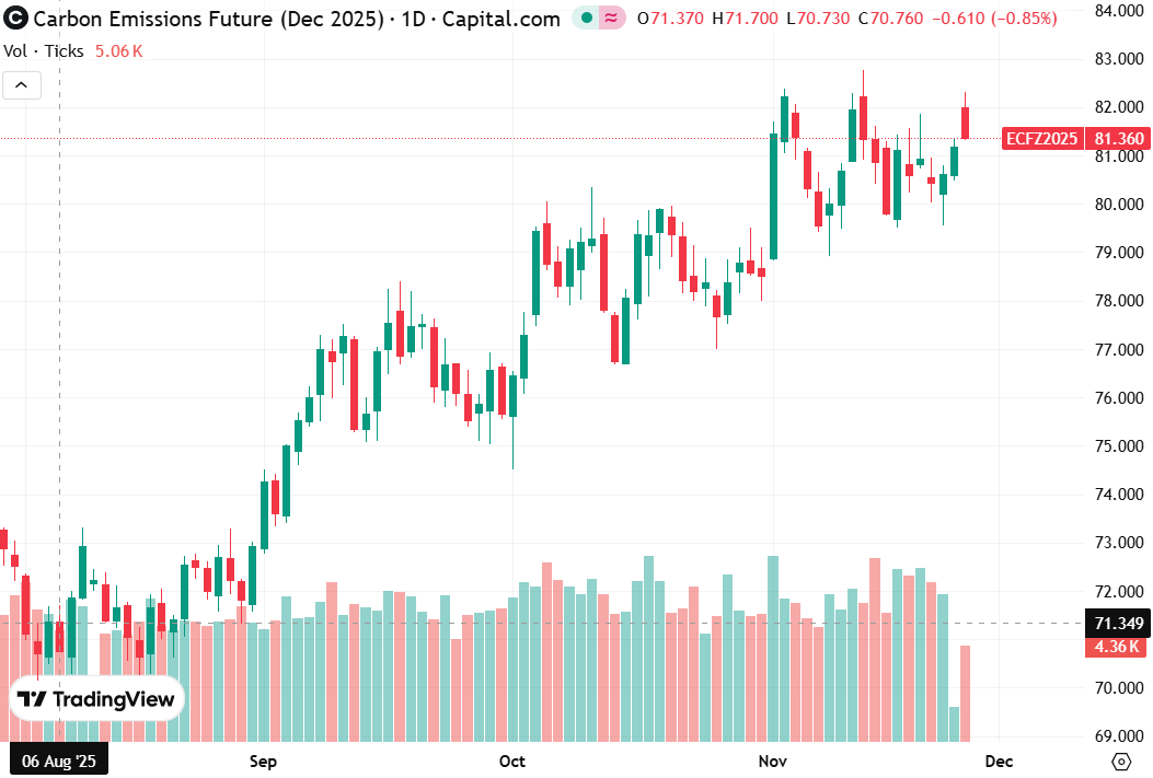 Alles in allem erwarten wir deshalb, dass der Aufwind im EU-Emissionshandel anhält. Das diesjährige Tauziehen um das Emissionsminderungsziel für 2040 hat zwar noch mal vor Augen geführt, dass der Rückenwind für eine ambitionierte Klima-Politik etwas nachlässt, aber viele Stellschrauben, die für höhere Preise sprechen, sind bereits gestellt. Dazu zählt neben der schnelleren Absenkung der Obergrenze der jährlichen Emissionen der Grenzausgleichsmechanismus (CBAM). Im Rahmen dessen wird die freie Zuteillung in den betroffenen Industriesektoren ab nächstes Jahr nach und nach bis 2034 ausgeschlichen und entsprechend sind die Emissionsrechte am Markt zu kaufen..