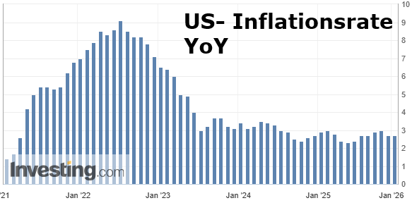 In den USA hat sich die Inflation Ende des vergangenen Jahres stabil gehalten. Im Jahresvergleich stiegen die Verbraucherpreise im Dezember wie bereits im Monat zuvor um 2,7 Prozent, wie das Arbeitsministerium am Dienstag in Washington mitteilte. Volkswirte hatten dies im Schnitt erwartet. Im Monatsvergleich legten die Verbraucherpreise um 0,3 Prozent zu. Auch dies war erwartet worden.. --- Die Kerninflation, bei der schwankungsanfällige Preise für Energie und Nahrungsmittel herausgerechnet werden, betrug im Dezember im Jahresvergleich unverändert 2,6 Prozent. Analysten hatten hier mit einem leichten Anstieg um 0,1 Prozentpunkte auf 2,7 Prozent gerechnet..