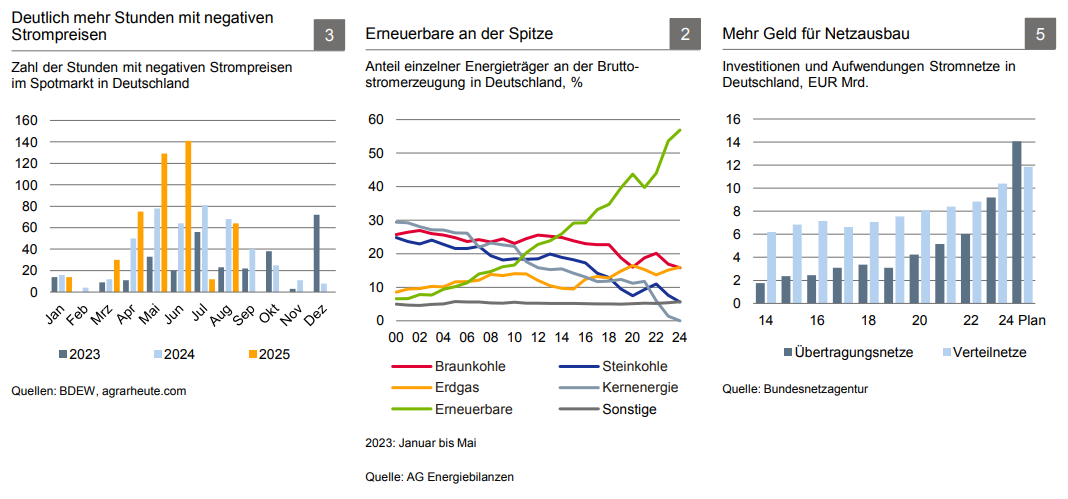 Der Monitoringbericht zur Energiewende und die Schlussfolgerungen des BMWE sind ein Realitätscheck bezüglich der Kosteneffizienz energiepolitischer Maßnahmen oder des erwarteten künftigen Stromverbrauchs. Im Kern geht es darum, dass der Ausbau von Erneuerbaren, Netzen, Speichern und Stromnachfrage besser synchronisiert werden muss, Maßnahmen für eine höhere Versorgungssicherheit zu ergreifen und mehr Technologieoffenheit zuzulassen... --- Bei der Fotovoltaik dürfte weiterhin der größte Zubau zu verzeichnen sein. Auch in andere Bereiche der Energiewende werden weiter Investitionen fließen. Besondere Dynamik erwarten wir im Bereich Batterien. Bei den Grundlastkraftwerken muss zunächst Klarheit bezüglich des rechtlichen Rahmens herrschen. Die Investitionen in die Stromnetze dürften in den kommenden Jahren deutlich höher ausfallen als in der Vergangenheit. Richtig ist auch, dass der Ausbau von Erneuerbaren, Netzen, Speichern und Stromnachfrage besser synchronisiert werden muss..