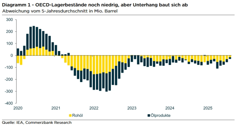 Die (zunächst) weiterhin steigende Ölförderung dämpfte die Sorgen vor einer Anspannung am Ölmarkt durch Sanktionen. So schätzt Reuters auf Basis von Umfragen, dass die OPEC-Produktion im Oktober weiter gestiegen ist.. --- Zwei der drei großen Energieagenturen gehen deshalb von einer massiven Überversorgung am Ölmarkt aus. Fakt ist jedoch auch, dass sich diese Überversorgung bislang nicht in den OECD-Lagerbeständen widerspiegelt. Diese liegen immer noch unterhalb des Fünf-Jahresdurchschnitts. Das hohe Ölangebot wird derzeit vor allem von China absorbiert.. --- Sollte sich eine Verlangsamung des Lageraufbaus in China abzeichnen, könnten die Ölpreise unter Druck geraten. --- Auch an den Industriemetallmärkten wird man nach Chinas Handelsbilanzzahlen auf die Produktionszahlen schauen. Allzu viel Euphorie erwarten wir allerdings nicht, da die Binnenkonjunktur – allen voran die Investitionen – weiterhin schwach ausfallen dürfte.. --- Gold dürfte als sicherer Hafen weiterhin gefragt bleiben..
