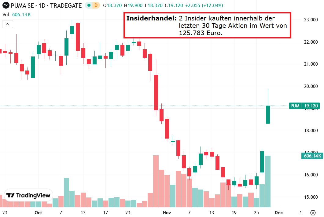 Der chinesische Sportartikelhersteller Anta Sports Products gehört einem Medienbericht zufolge zu den Unternehmen, die eine mögliche Übernahme des Wettbewerbers Puma prüfen. Wie die Nachrichtenagentur Bloomberg unter Berufung auf namentlich nicht genannte Quellen berichtet, könnte Anta sich mit einer Private-Equity-Firma zusammenschließen, sollte das Unternehmen beschließen, das Vorhaben voranzutreiben. Das chinesische Bekleidungsunternehmen Li Ning habe Bloomberg zufolge Finanzierungsoptionen mit Banken erörtert und einen ersten Blick auf Puma geworfen. Puma könnte auch Interesse des japanischen Wettbewerbers Asics auf sich ziehen, berichtet Bloomberg.. --- Puma ist heute 13% im Plus.. --- Man achte auf die Insidertransaktionen, in Verbindung mit einer charttechnischen Bodenbildung wie bei Puma zu sehen, ergeben sich häufig gute Chancen! https://www.boersentreff.de/desktop_Anlagestrategien-kategorie_InsiderhandelDeutschland.html