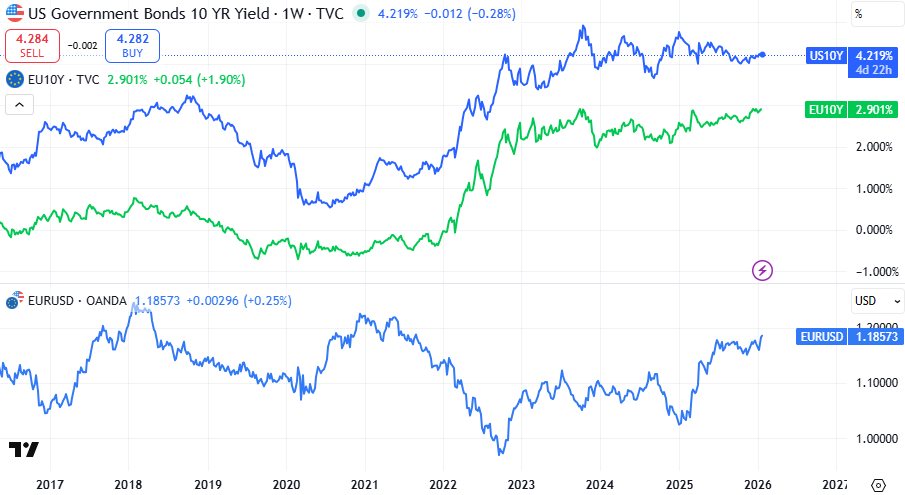 Die gestrige Rede von US-Präsident Donald Trump auf dem Weltwirtschaftsforum in Davos habe für spürbare Bewegungen an den Märkten gesorgt, wobei auch die Anleiherenditen auf beiden Seiten des Atlantiks volatil reagiert hätten. [mehr]...