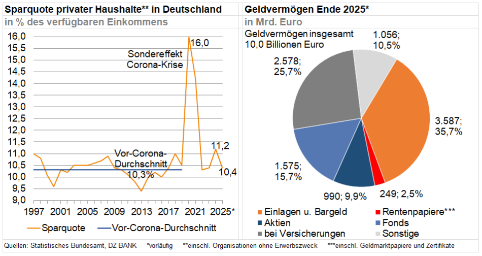 Private Haushalte Deutschland: 2025 starker Vermögensaufbau dank Sparen und Aktien (DZ Bank)