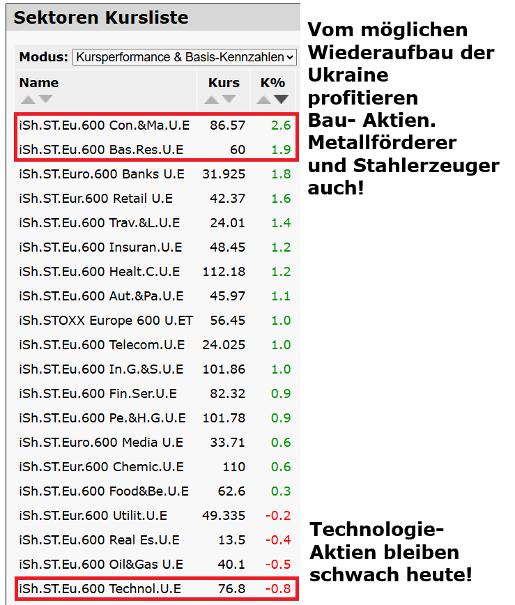 Die Ukraine hat den wichtigsten Punkten des US-Friedensplans Angaben beider Regierungen zufolge zugestimmt... --- Die Sprecherin des Weissen Hauses, Karoline Leavitt, schrieb auf der Plattform X, es gebe «einige heikle, aber nicht unüberwindbare Details, die geklärt werden müssen und weitere Gespräche zwischen der Ukraine, Russland und den Vereinigten Staaten erfordern».. --- Die USA hatten in der vergangenen Woche einen 28-Punkte-Plan vorgelegt, um den von Kremlchef Wladimir Putin befohlenen Krieg in der Ukraine zu beenden. Europäer und Ukrainer hatten den von vielen als «russische Wunschliste» kritisierten Plan in Genf mit US-Vertretern nachverhandelt. Medienberichten zufolge soll der Plan nur noch rund 20 Punkte umfassen.. --- Lawrow: Moskau wartet auf Informationen aus den USA.. --- Die Börse zeigt sich heute freundlich: Krieg verzehrt, was Friede beschert! https://www.boersentreff.de/desktop_Kurslisten-kategorie_Sektoren.html
